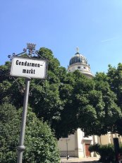 Der 70 Meter hohe Kuppelturm befindet sich – wenn Sie Ihren Blick frontal auf den Gendarmenmarkt richten – links vom Konzerthaus. Das Pendant zum Französischen Dom, der rechts vom Konzerthaus errichtet wurde.